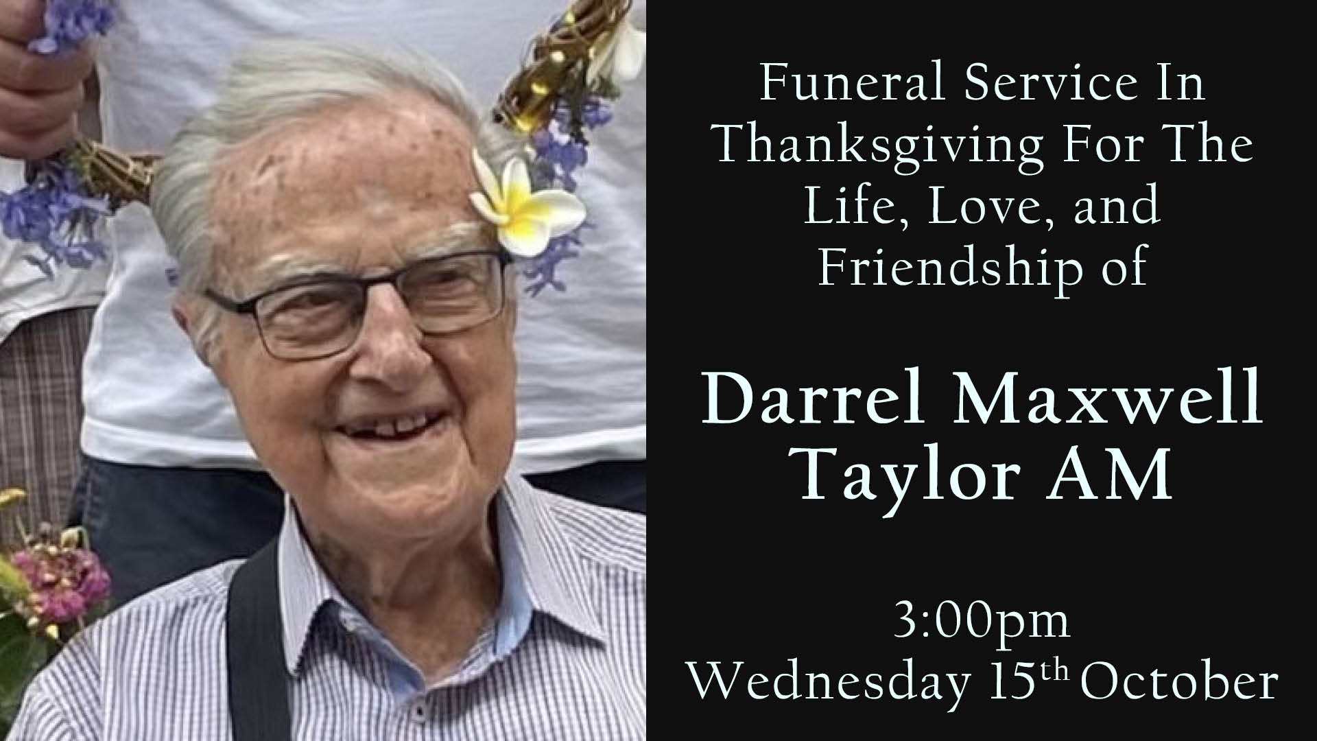 Funeral Service in Thanksgiving for the Life, Love and Friendship of Darrel Maxwell Taylor AM